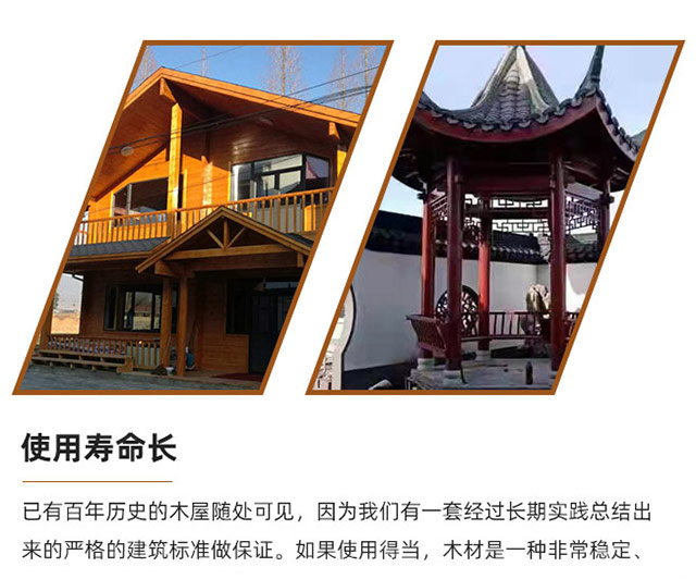 • 已有百年歷史的木屋隨處可見(jiàn),因?yàn)槲覀冇幸惶捉?jīng)過(guò)長(zhǎng)期實(shí)踐總結(jié)出 來(lái)的嚴(yán)格的建筑標(biāo)準(zhǔn)做保證。如果使用得當(dāng),木材是一種非常穩(wěn)定、 壽命長(zhǎng)、耐久性強(qiáng)的材料。